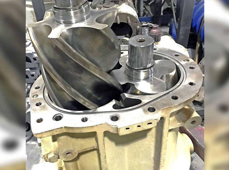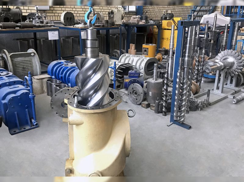 کمپرسورهای اسکروی روغنی در صنایع مختلف ازجمله صنایع سیمان کاربرد گسترده ای جهت تولید هوای فشرده دارد. با توجه به قیمت بالا و حساسیت عملکرد این تجهیز، بازسازی و تامین قطعات یدکی آن توجیه فنی و اقتصادی بالایی دارد. علاوه بر بازسازی اسکروها، بازسازی سیلندر اصلی و اجزاء ساختاری کمپرسور انجام می شود. به زودی با ارتقاء عملکرد ماشین مخصوص تولید اسکروها، عملیات تولید اسکروهای کمپرسور انجام خواهد شد.